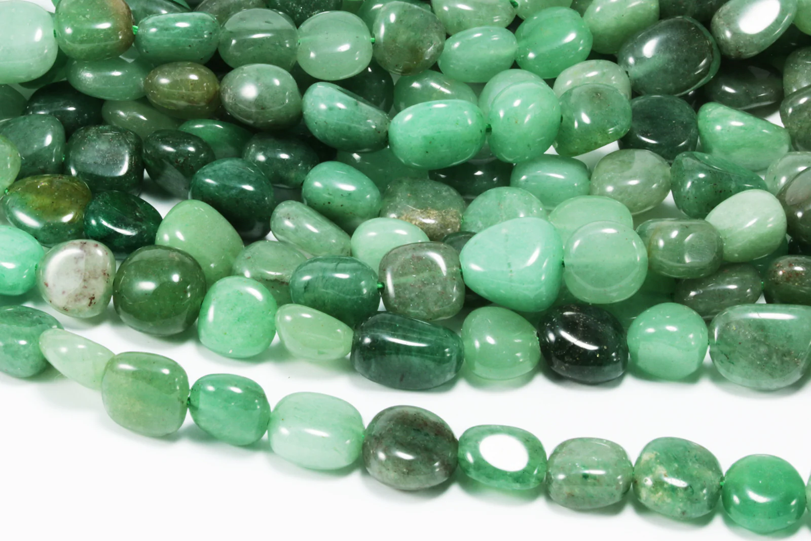Hochwertiger Aventurin zeigt eine intensive grüne Farbe und natürliche Muster. Authentisches Material verstärkt die energetische Wirkung des Steins.